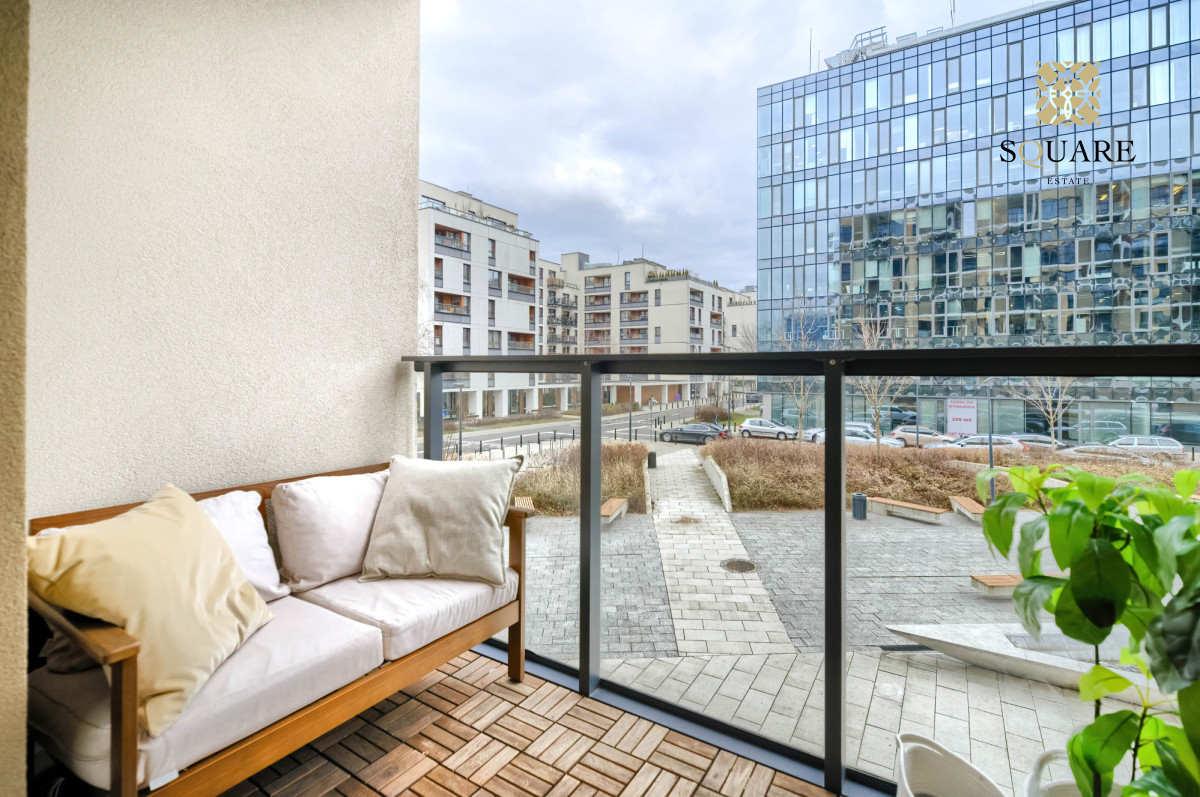Loggia z widokiem na zadbany, wewnętrzny dziedziniec. Brak placu zabaw pod oknami gwarantuje spokój i prywatność.