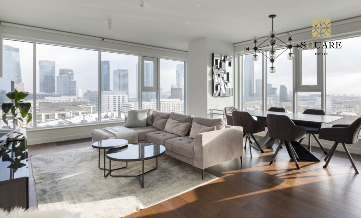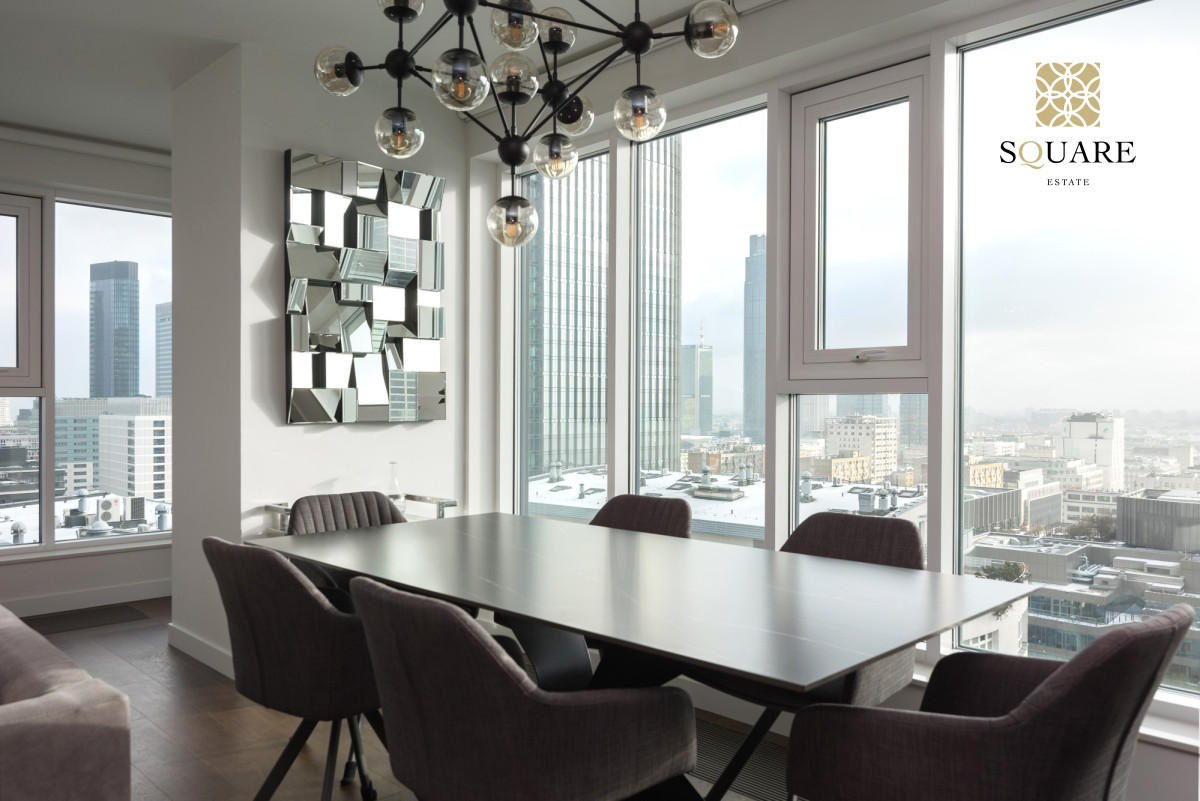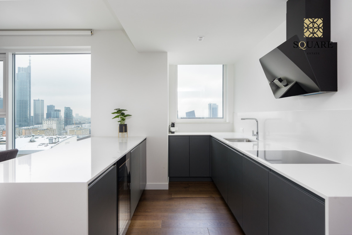 Luksusowy apartament o pow. 150,48m2, położony na 19 piętrze w budynku o wysokim standardzie.
