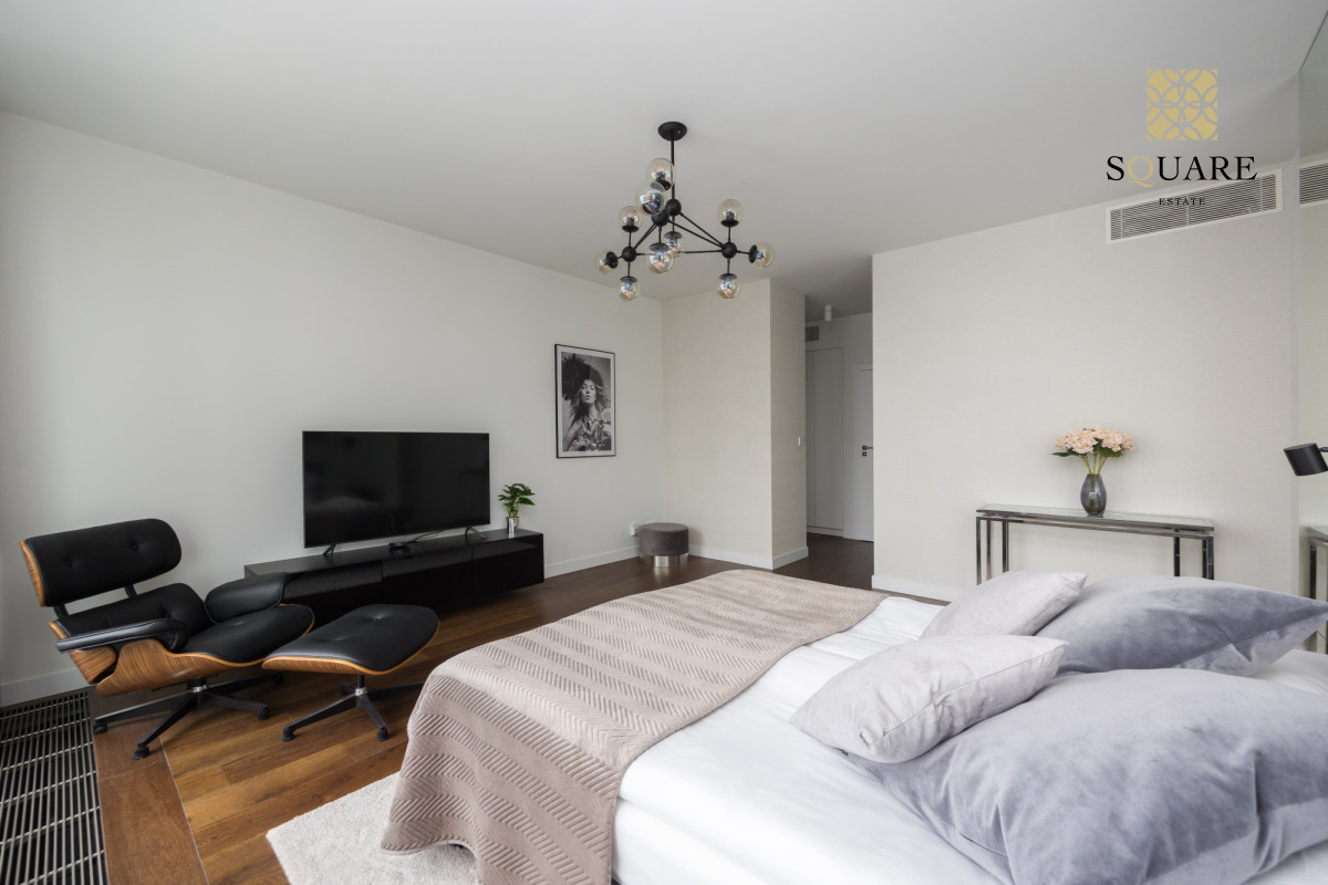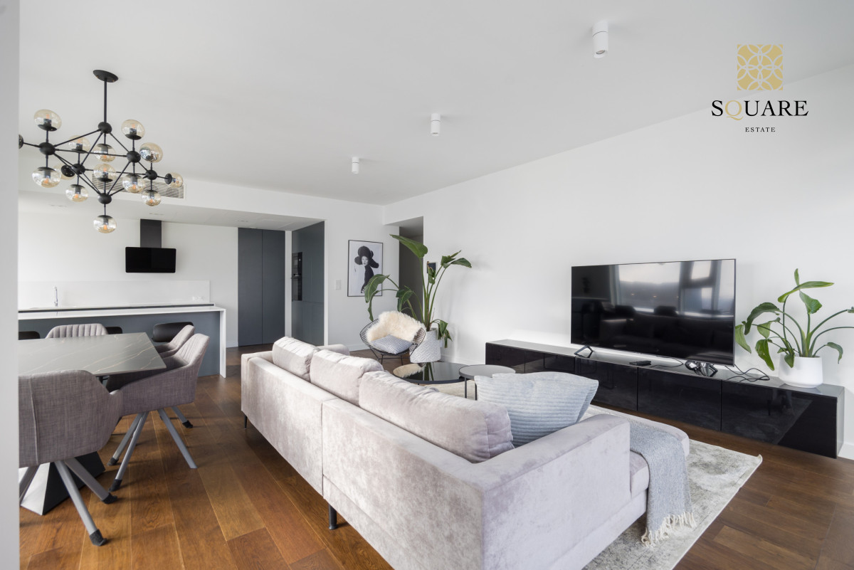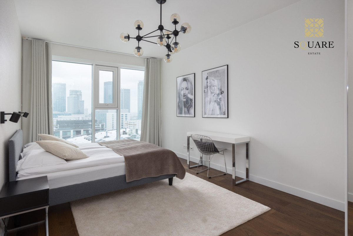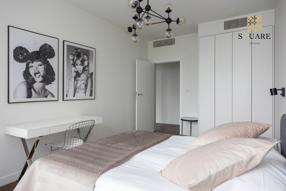 The apartment is fully finished and equipped with the highest quality materials, perfectly reflecting the character of the entire development. An undeniable asset of this property is the impressive view of the Warsaw skyline, which certainly deserves recognition.