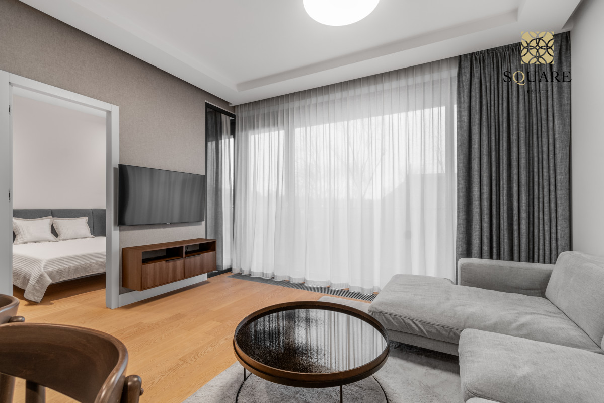 Apartament o wysokim standardzie jest klimatyzowany i w pełni urządzony.