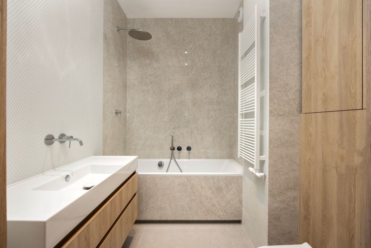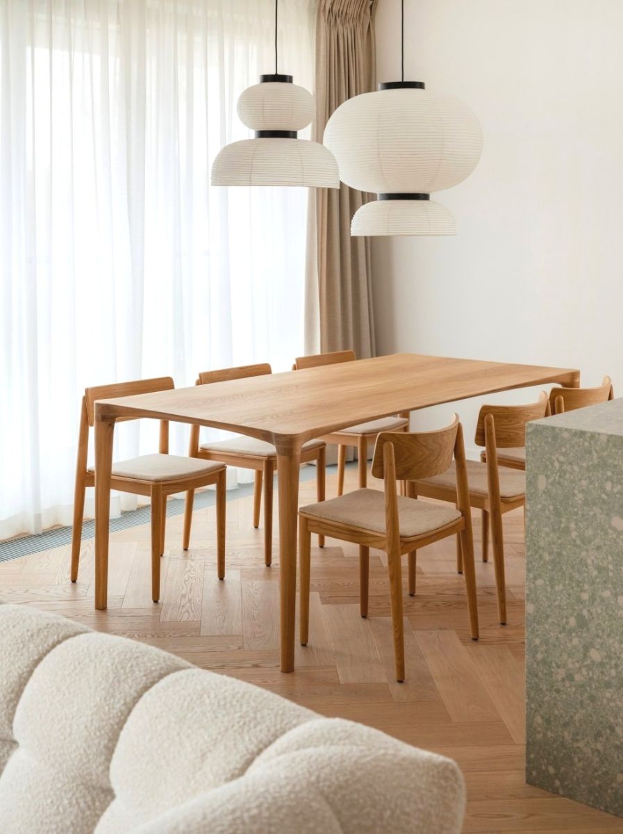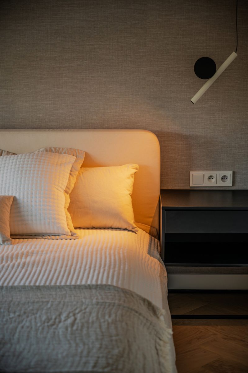 Apartament został wykończony w stylu Scandi Modern i wyposażony został w sprzęty AGD i RTV wysokiej jakości. W zabudowie kuchennej do dyspozycji najemcy jest piekarnik z funkcją mikrofali, w salonie pojawił się telewizor i szafka TV. Dla podniesienia komfortu cieplnego w salonie (ekspozycja zachodnia) zainstalowano klimatyzację, jak również w innych pokojach.