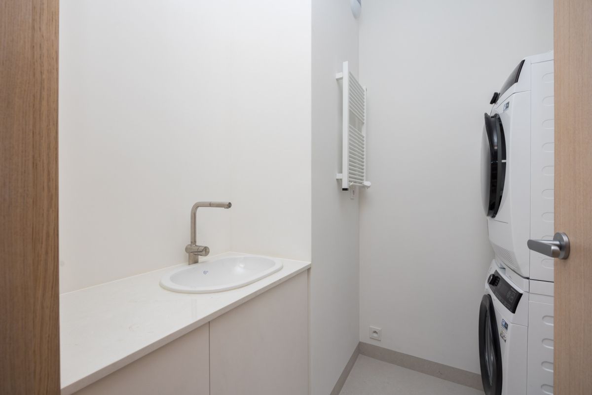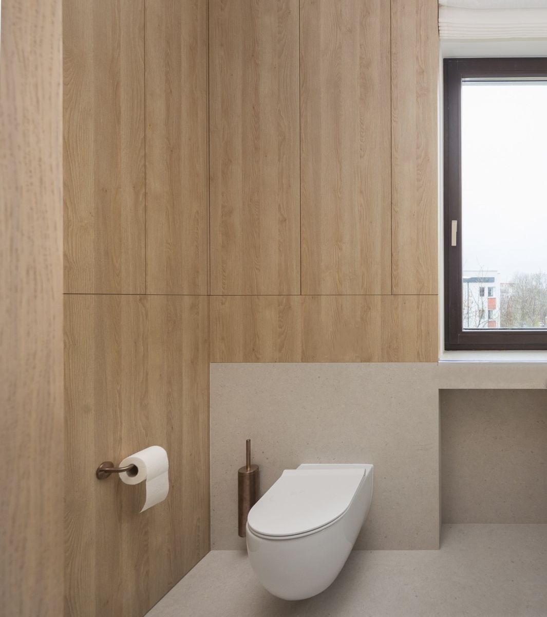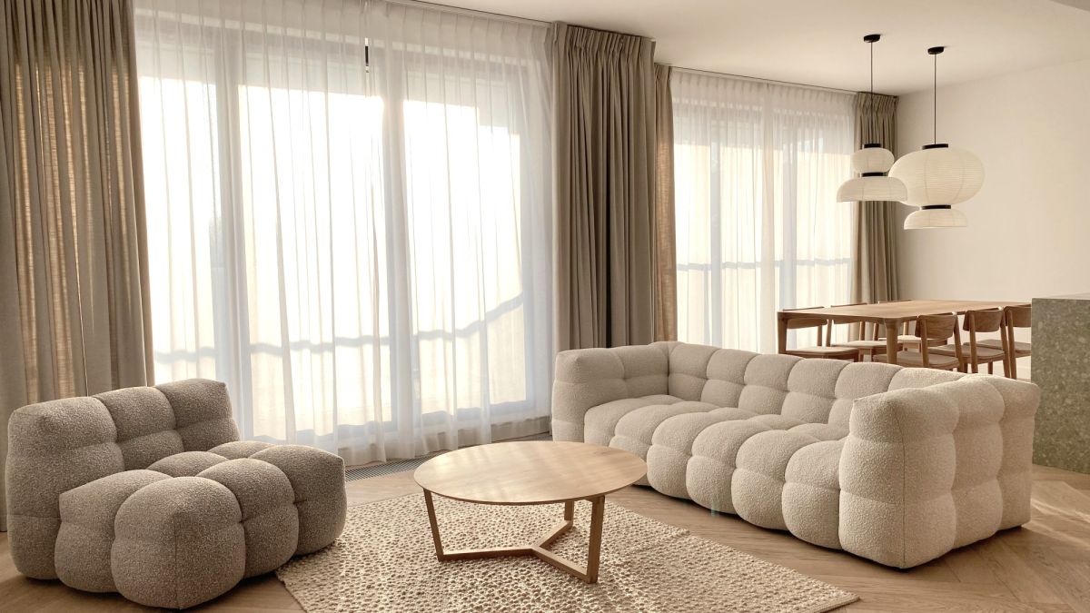 Apartament został wykończony w stylu Scandi Modern i wyposażony został w sprzęty AGD i RTV wysokiej jakości. W zabudowie kuchennej do dyspozycji najemcy jest piekarnik z funkcją mikrofali, w salonie pojawił się telewizor i szafka TV. Dla podniesienia komfortu cieplnego w salonie (ekspozycja zachodnia) zainstalowano klimatyzację, jak również w innych pokojach.