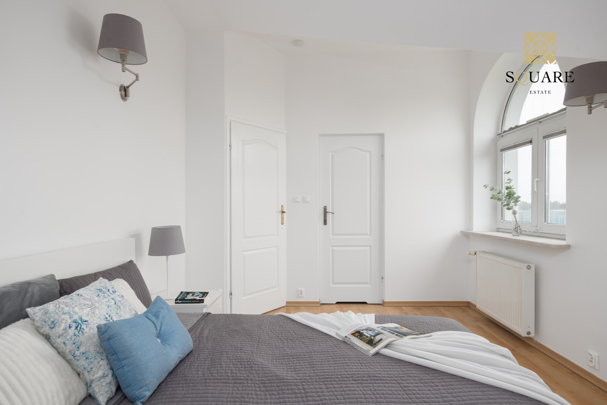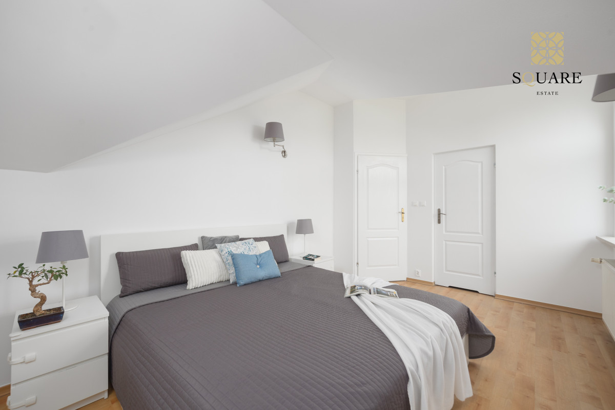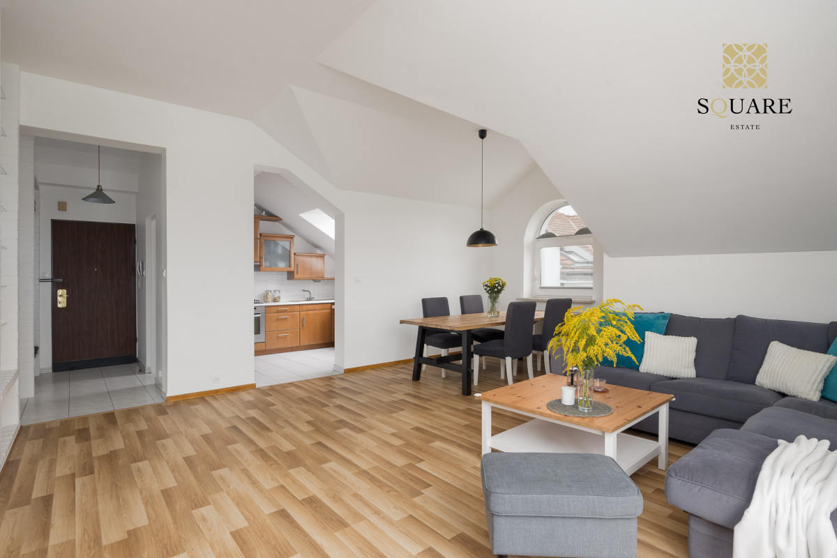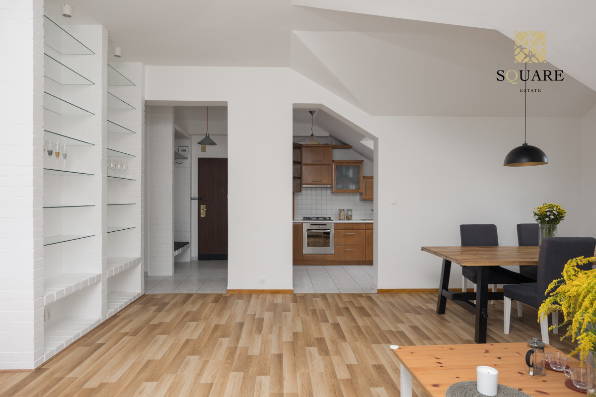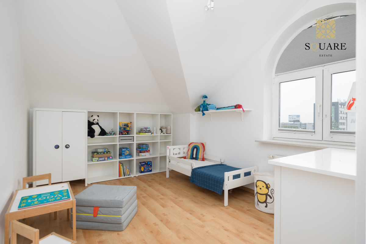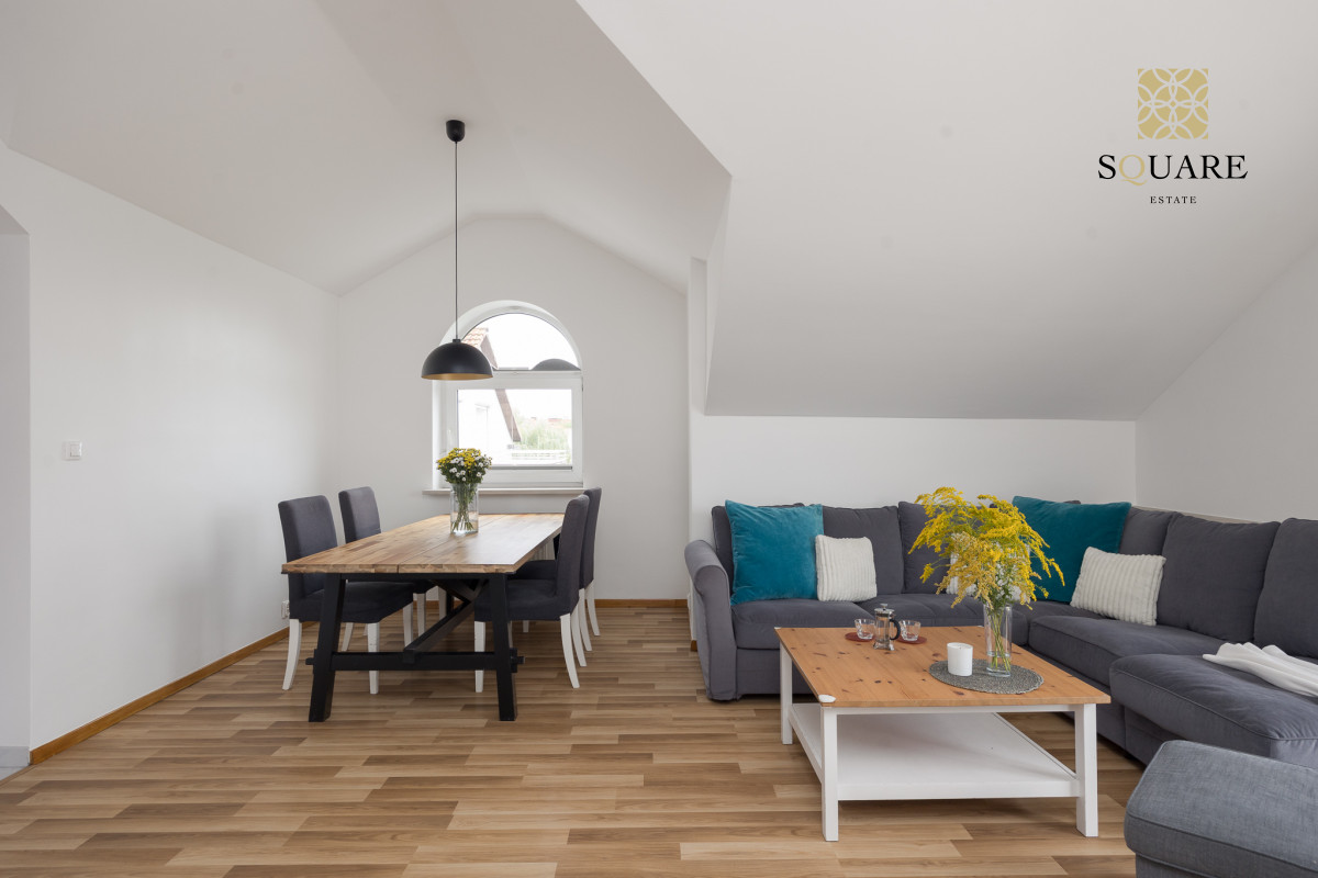 Wysokość mieszkania 307cm co sprawia że każde z pomieszczeń wydaje się bardzo przestronne. Mimo że posiada 96m2 powierzchni mieszkalnej to dochodzą skosy, które po części są wykorzystane na zabudowę szaf