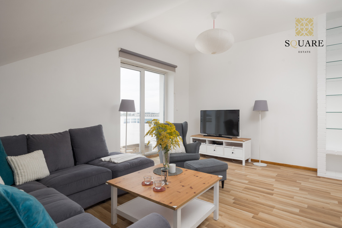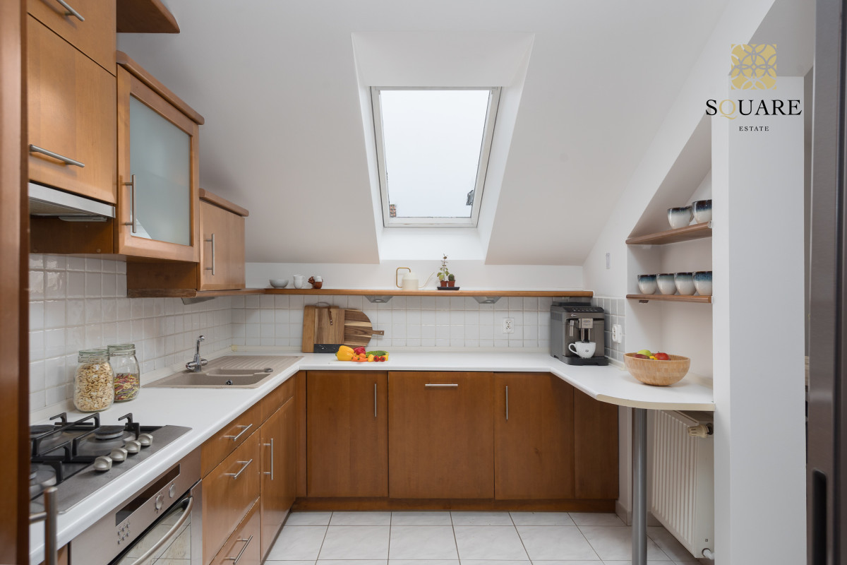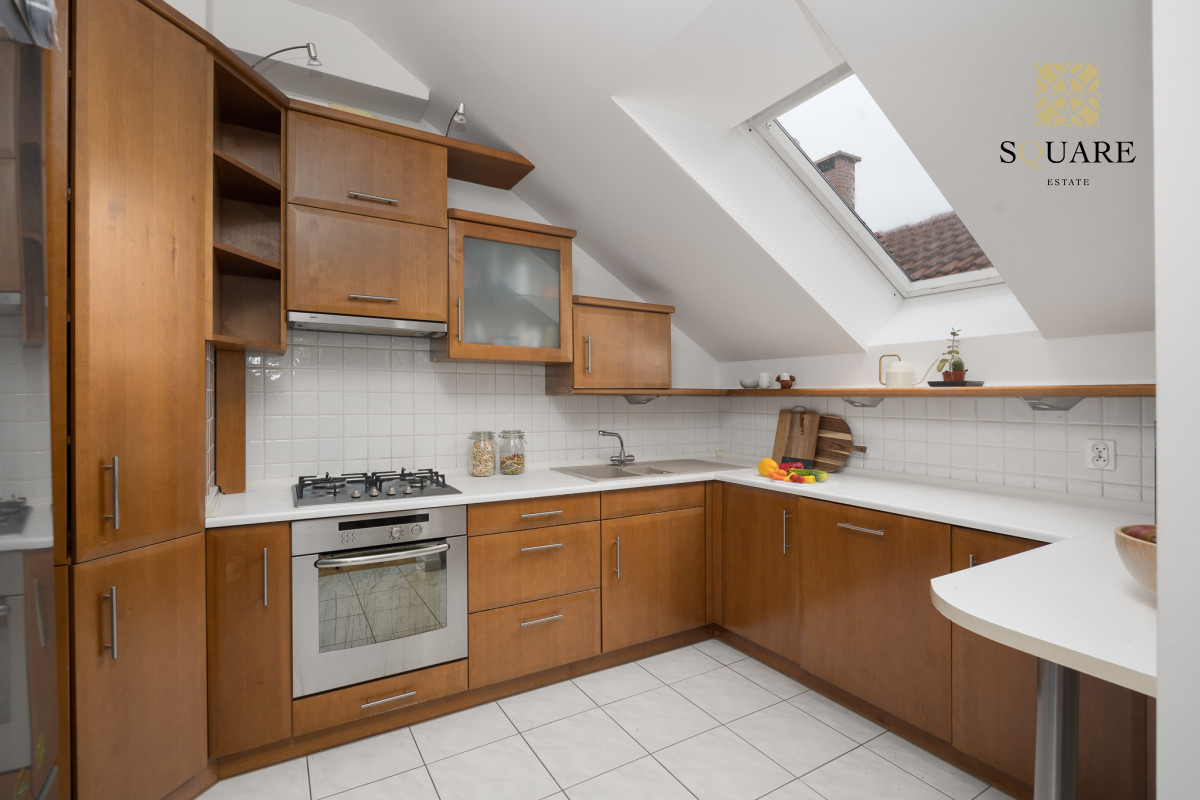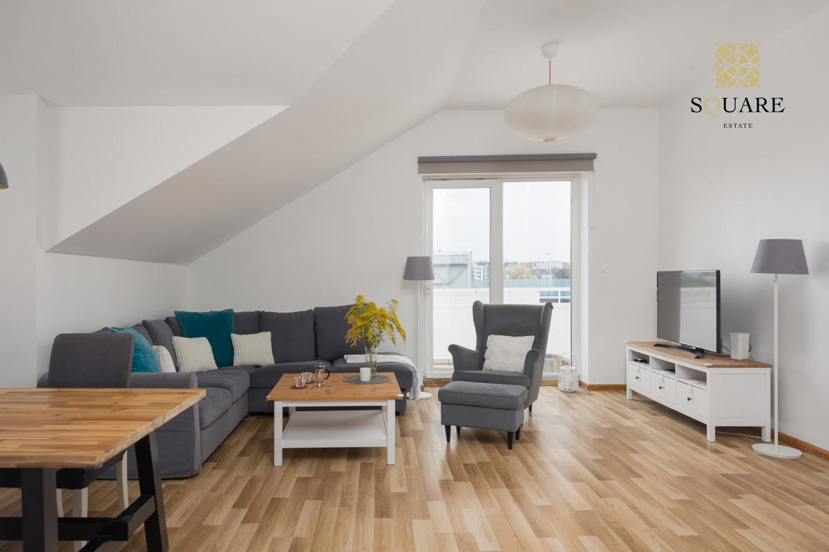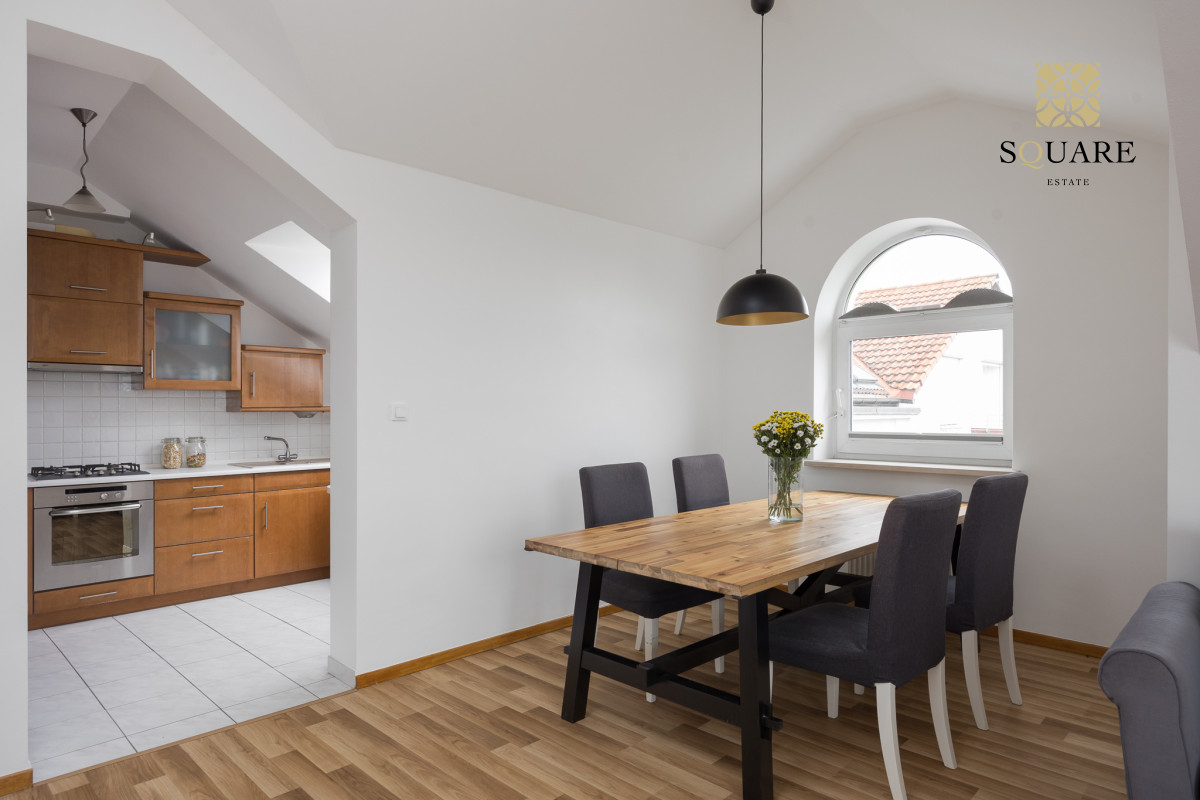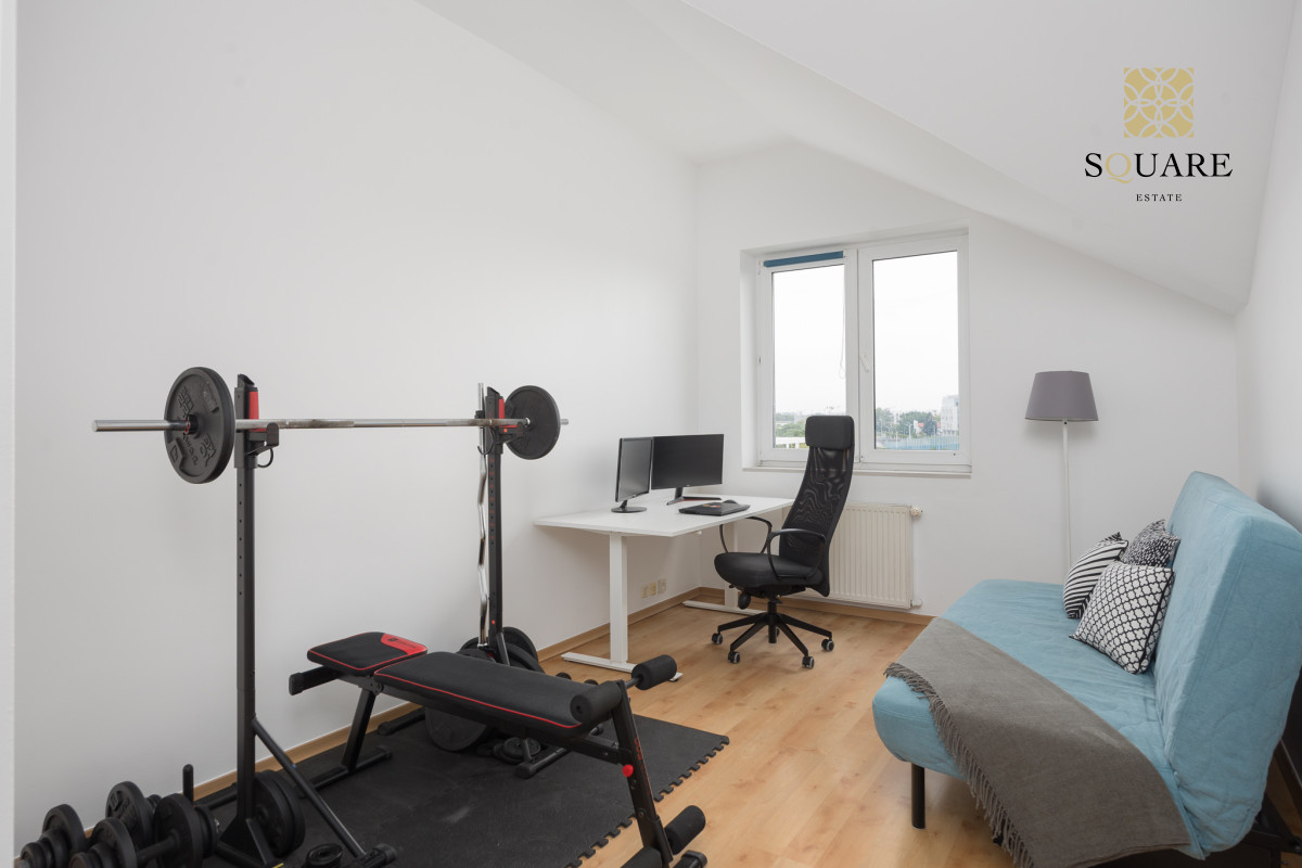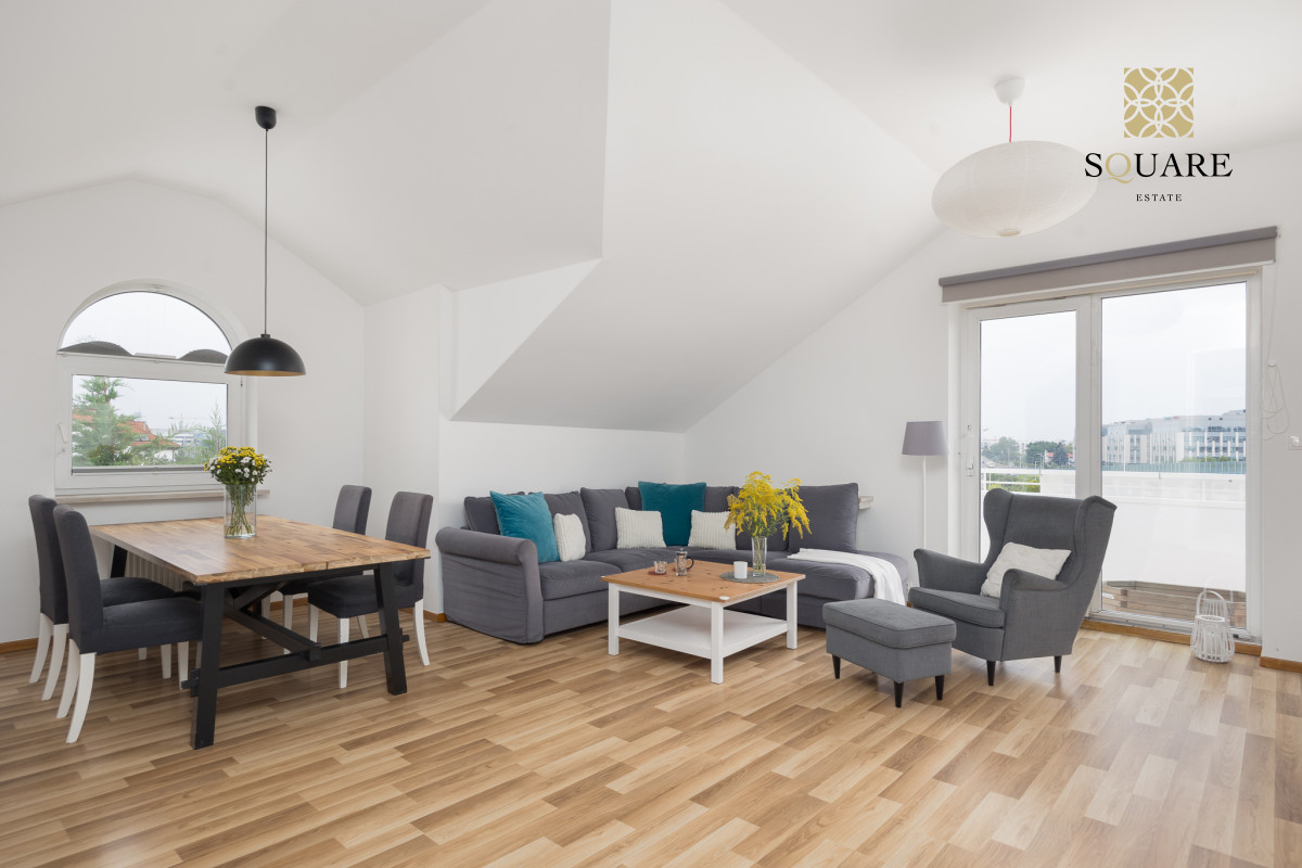 Wysokość mieszkania 307cm co sprawia że każde z pomieszczeń wydaje się bardzo przestronne. Mimo że posiada 96m2 powierzchni mieszkalnej to dochodzą skosy, które po części są wykorzystane na zabudowę szaf